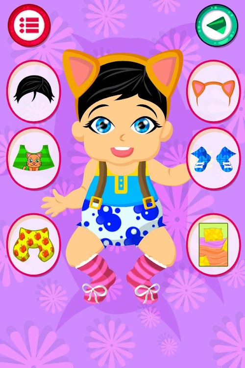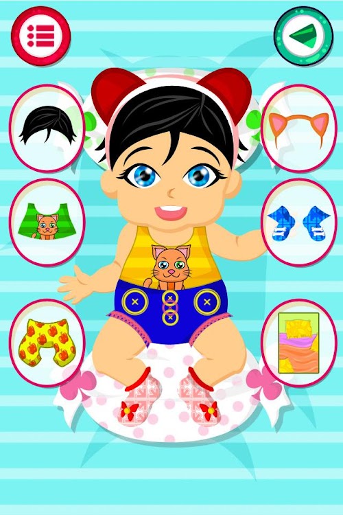 Since leaving the belly of the mother until it reaches your hands so you can take care of it, will tell you how to play this game newborn babies and you can help her she would have as soon as possible and in the best way choose the different clothes pressing each of the different buttons, then you can restart if you do not like or can continue to choose different styles of clothing that combine.