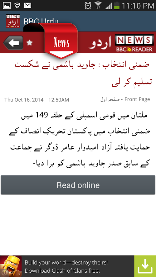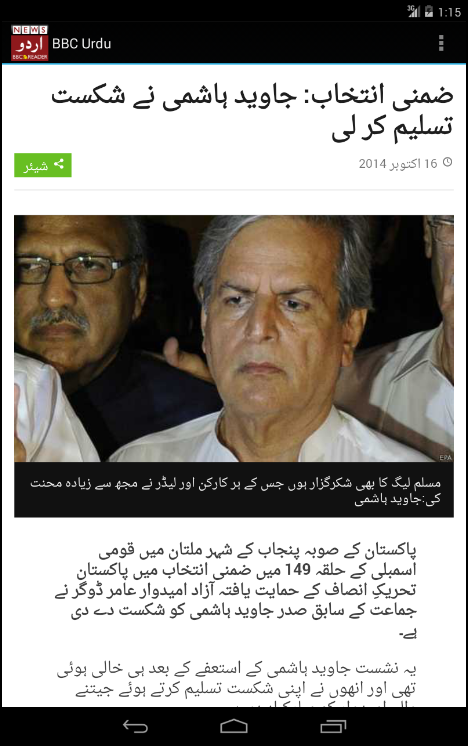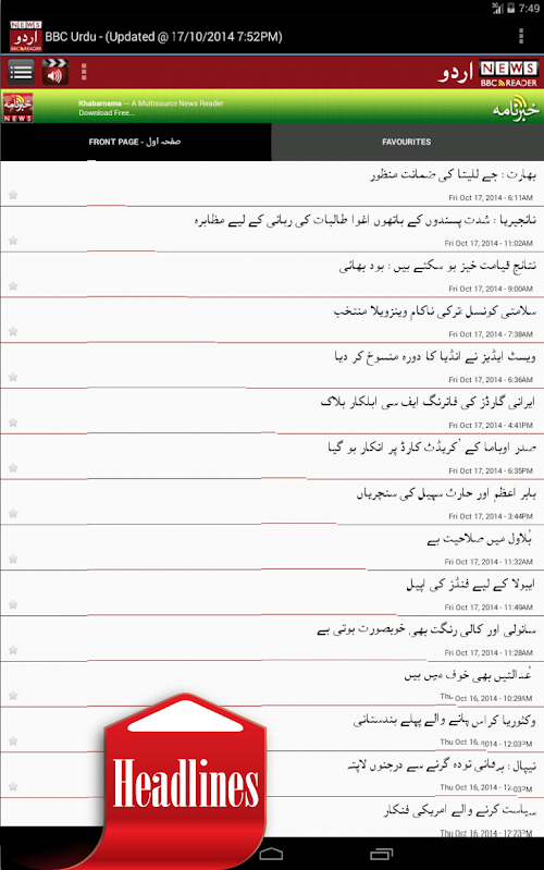 Your comprehensive and personalized view of headline stories and local news. Shows you all the latest news headlines as soon as published. Converts Urdu text into readable format for all Android versions and different devices.
