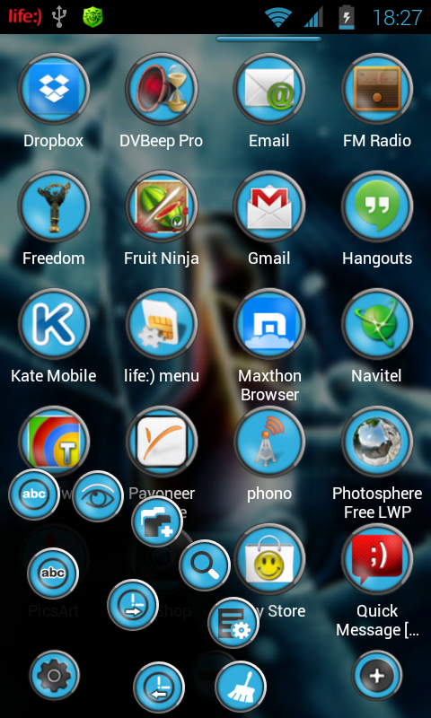 • Developers of launcher does not add the normal menu replacement of third-party icons. But on the desktop, you can replace them manually: long press on the icon - will fall more small icons and select the second (like a square) then be able to see a list of icons.