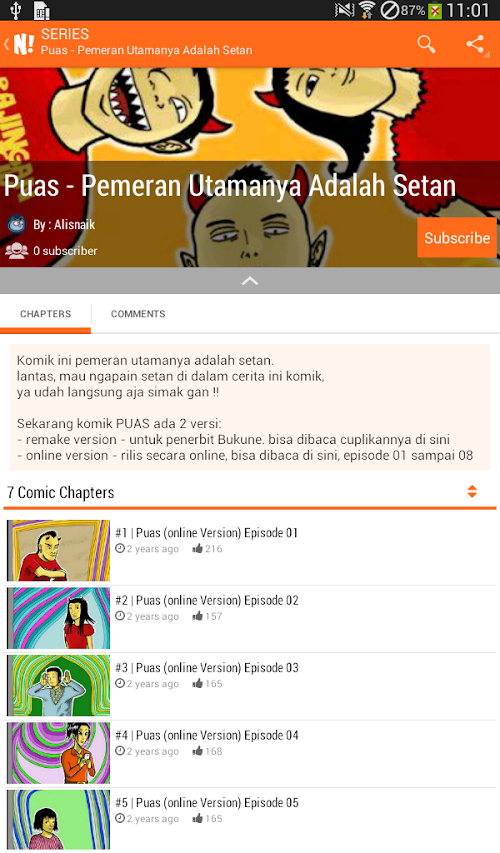 NGOMIK is a slang word which means baca komik or reading comic in bahasa Indonesia. So that NGOMIK is a distribution platform for digital comics. NGOMIK brings you enjoyable digital comics.