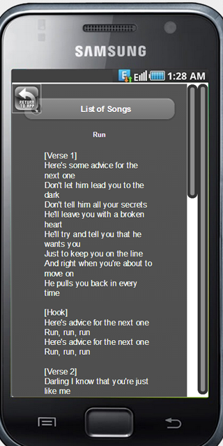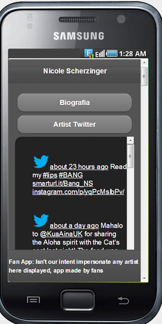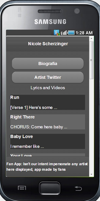 This version of Nicole Scherzinger lyrics Android App comes with one universal variant which will work on all the Android devices.