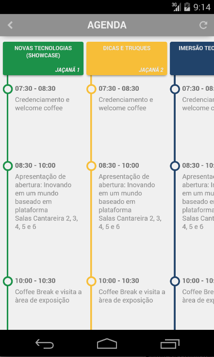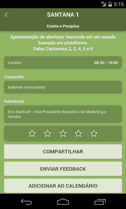Bom evento!Download the complete guide to the main event organized by National Instruments Brazil, the NIDays 2014. This application provides a map with the rooms and lectures, plus the complete event schedule with all activities.