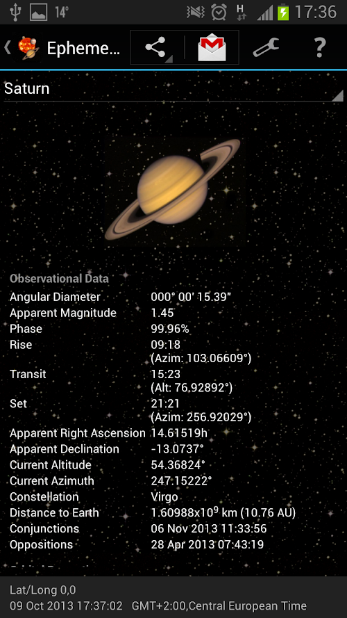 - Observe the sky with the skymap, planisphere, aurora forecast, polar finder, weather forecast, daylight map, Moon and Mars maps, SOHO images, Jupiter and Saturn's moons, Moon and Sun calendars and what's up.