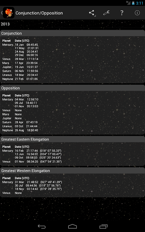 - Emphemerides for eclipses, equinoxes, conjunctions and oppositions, the sun, moon and planets