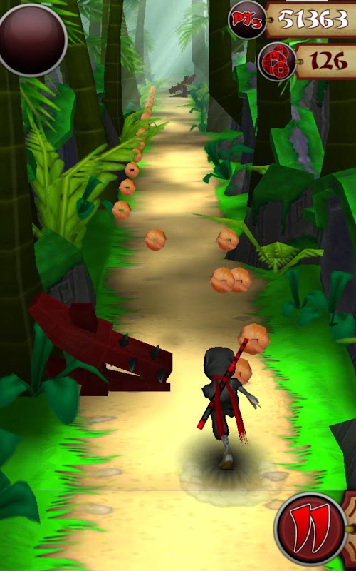 In Ninja Feet of Fury you face the final challenge to become a full ninja. Face the perils of the bamboo forest. As the player runs through the many challenges of the forest they need to collect as many coins as possible while staying on the trail. They can use these collected coins to unlock power-ups. These power-ups give the player amazing abilities.