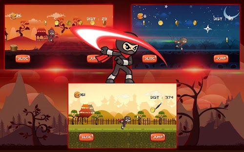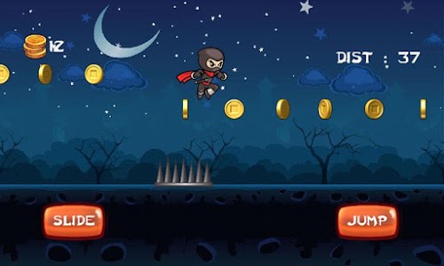 ♦♦♦ Simply control the Ninja player with jump and slide buttons.