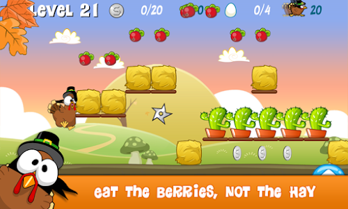 If Ninja Turkey fails, he'll be crashed and smashed to itsy-bitsy turkey-pieces, or even worse – he will have to attend thanksgiving dinner! You can stand by as this cruel fate awaits him, or decide to help Turkey to fight for his freedom!