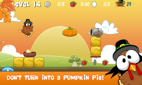 Will he succeed? Could he avoid the cruel fate of joining a family for Thanksgiving dinner? Ninja Turkey trusts you to help him out!
