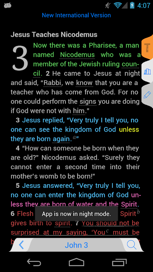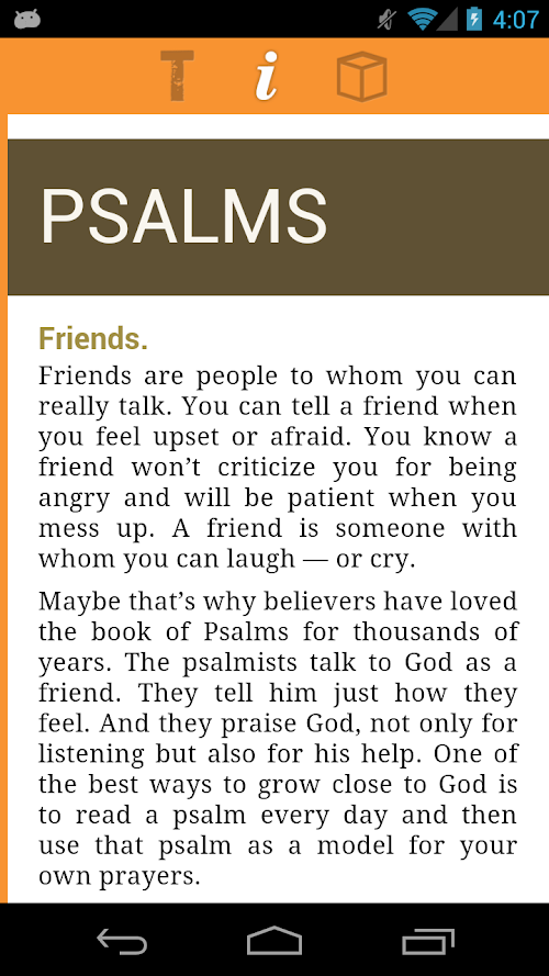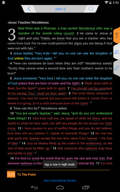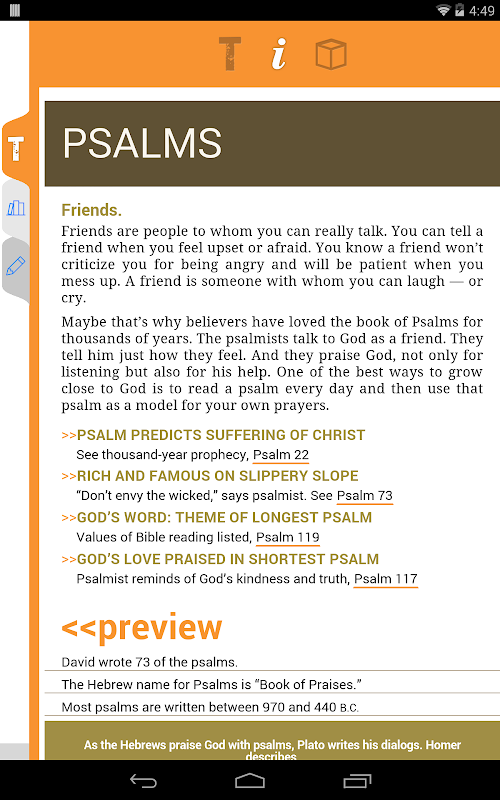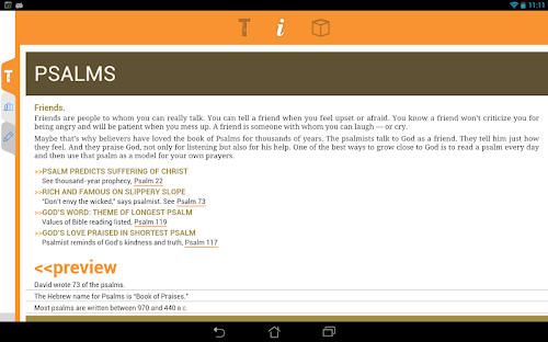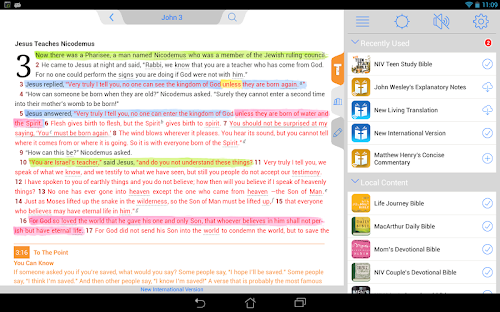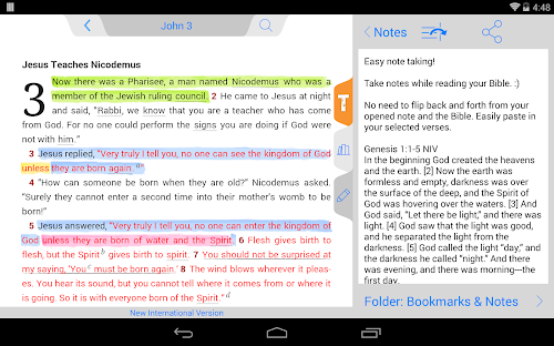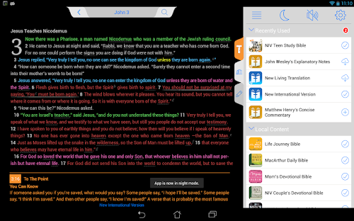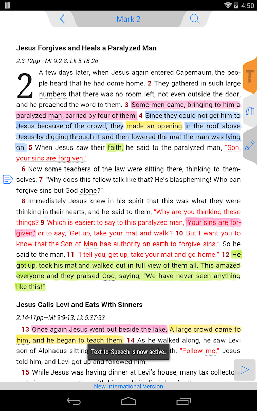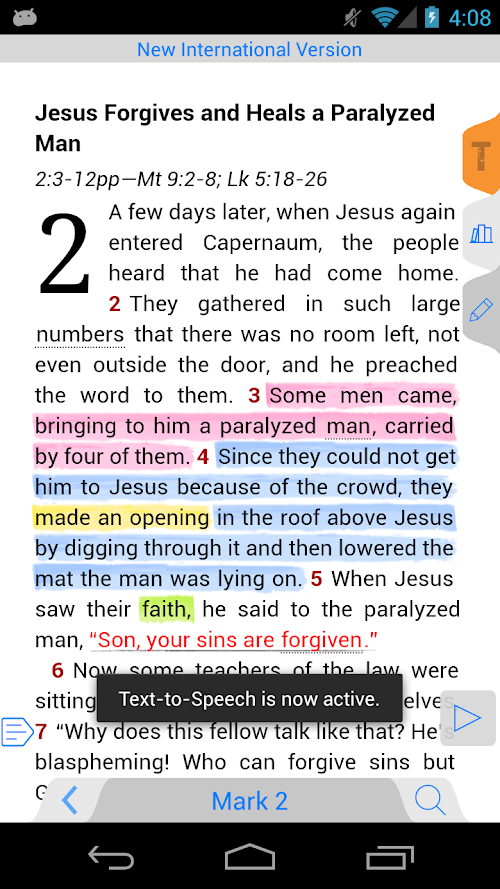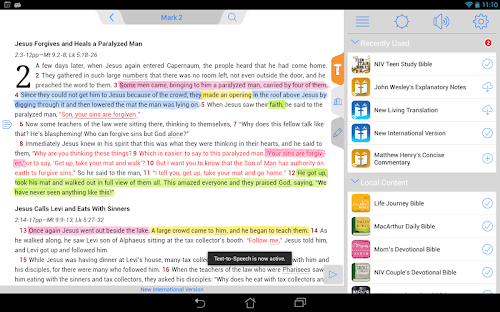 • Bible talks to you! Text-to-Speech allows the Bible to be read to you out loud