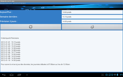 Enfin une application, sans publicité, qui vous permet de consulter sur votre mobile le niveau du Lac St-Jean rapidement et facilement.