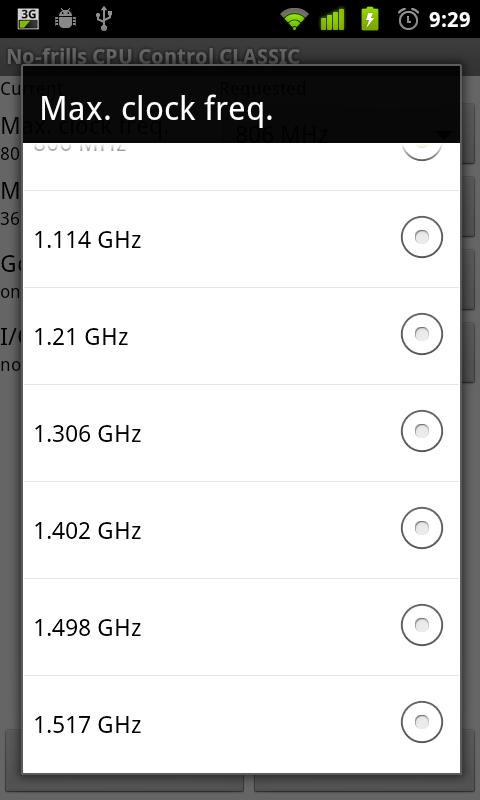 No-frills CPU Control CLASSIC is a trimmed down version of the popular No-frills CPU Control. It is meant for older devices running Android 1.6 "Donut" or Android 2.0 "Eclair" or for people who want an app as small as possible: just around 400KB!