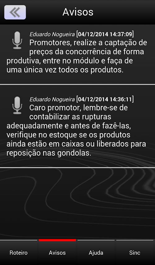 Este aplicativo permite que os promotores de cada loja possam indicar as rupturas, preços, planogramas, fotos e demais informações que possam ser colhidas nas lojas e informar a gerência sobre a situação do estoque e da apresentação dos itens nas gôndolas.