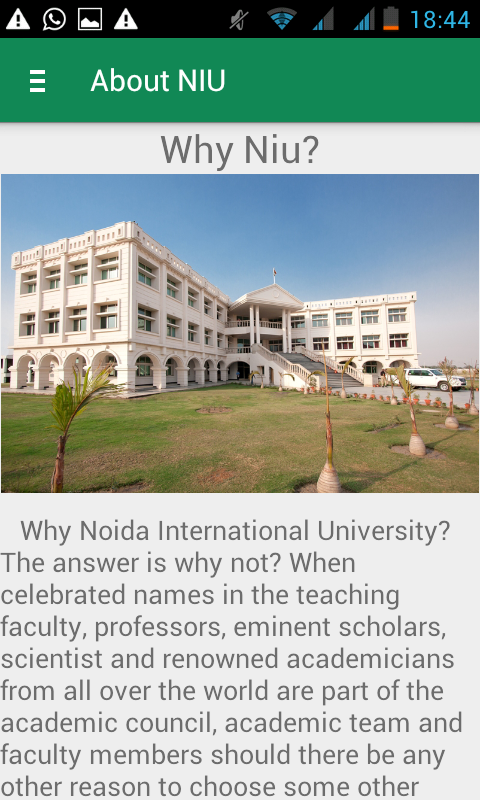 This application is designed concerning the aspects of Noida International University.