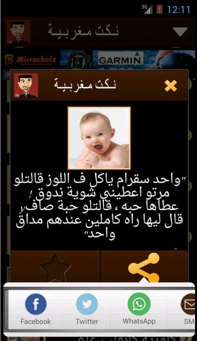 ntmana app t3jabkom o chokran Nokat Khasa b nas lkbar .fiha Nokat Top dyal Dahak .walakin mano3 3la drari Sghar idkhlo liha hit fiha Nokat fihom tkhsar Lhadra.