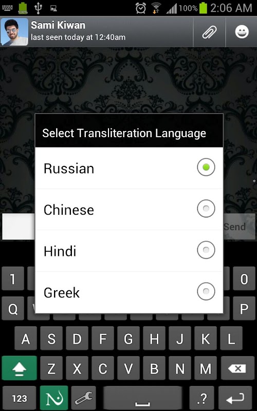 3- Write English( Latin) and instantly get 1 of the multiple languages you previously selected from Russian, Hindi , Chinese or Greek.