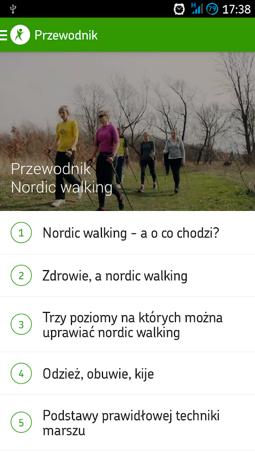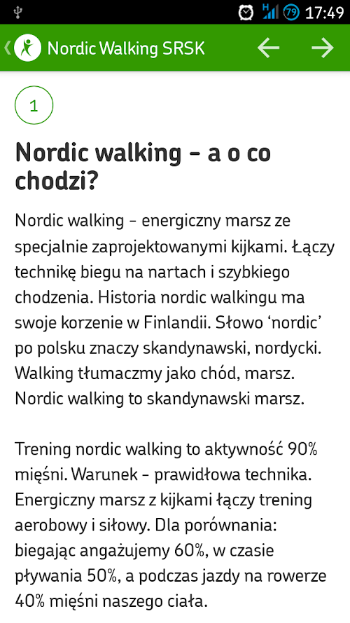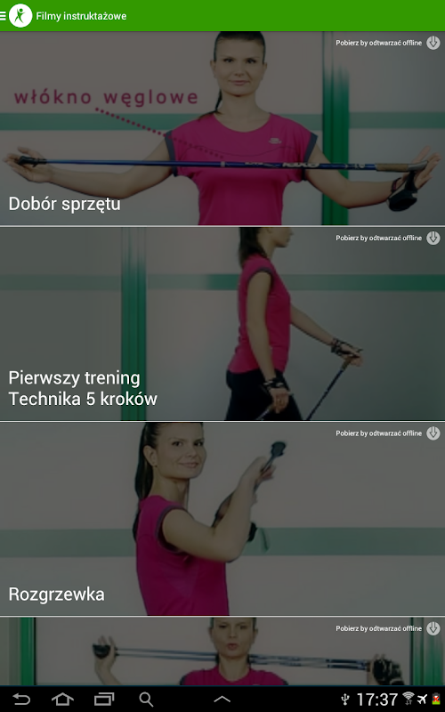 - Watch instructional videos containing advice of a professional nordic walking trainer.