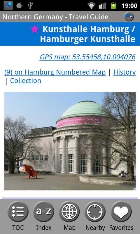 MobileReference Travel Guides provide detailed, practical information about attractions, landmarks, transportation, cultural venues, dining, lodging, history and much more. They are indexed alphabetically and by category, making it easier to access individual articles. Attractions can be viewed on an offline GPS map along with your current location so that you can easily find attractions near you as you explore the city.