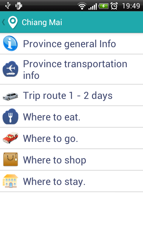 The application is proposed for gather useful travel information for anyone who interested in northern of Thailand travelling. Information will include 9 Northern provinces as following, Chiangmai, Chiangrai, Phayao, Phrae, Nan, Maehongson, Lamphun, and Lamphang. Travel information in detail will provide to user such as, overall information of each province, how to travel to the destination, hotel and accommodation, all sightseeing places, and souvenir shop. Also user can use the application to navigate to the selected destination by Google map. Moreover the application will support to increase travelling income of the northern area, by working as additional information channel right in the traveller’s mobile phone. This free application will make them easily pickup northern Thailand as there next travel destination.