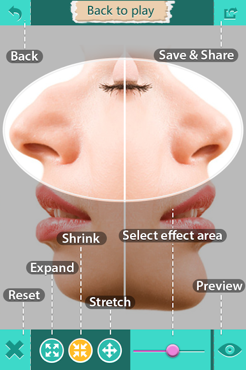 Make your nose smaller with a virtual nose reshaping or make your nose bridge higher, or change the shape with nose reshaping with this photo manipulation app! Simply awesome!