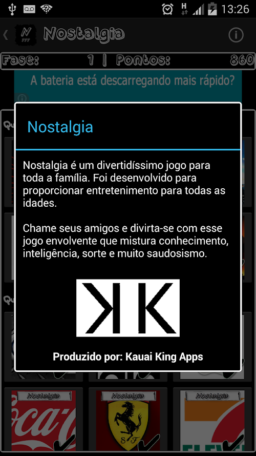 Nostalgia é um divertidíssimo jogo para toda a família. Foi desenvolvido para proporcionar entretenimento para todas as idades.