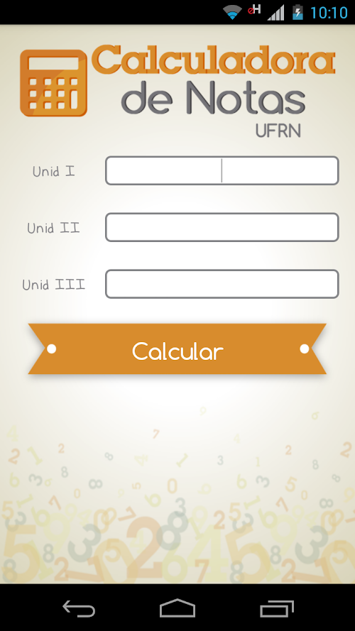 The calculator UFRN Notes - New Regulations and the essential app for all college students. In the system, the User can check their condition in its approval or disapproval in the disciplines of UFRN. With it, you can calculate how much a student will need in the last unit, the need in replacing (if necessary) or just make arbitrary calculations to know the system better. As the name suggest, all calculations take into account the new regulation UFRN (with respect to the evaluation system).