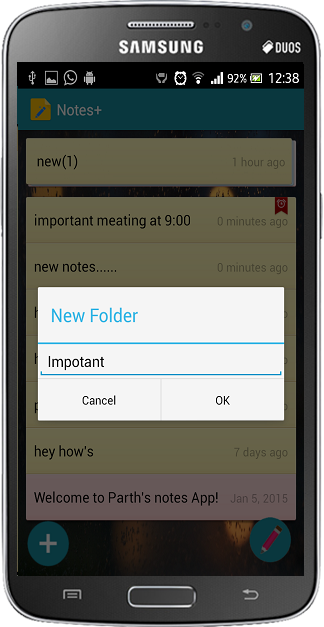 - Quickly and easily to create a new notes;