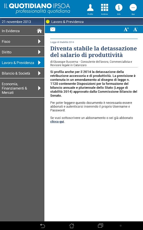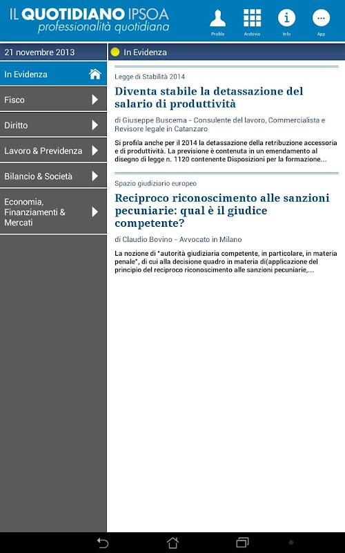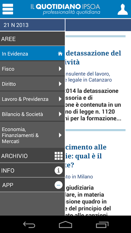 • L’archivio di tutte le edizioni precedenti consultabili per mese e giornoDownload for free "The Daily IPSOA" for Android to read and download on smartphones and tablets that contain the daily editions of the day's news and insights of the author, and have at your disposal all the information professional mobility in relation to: