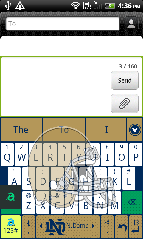The University of Notre Dame keyboard gives you the best keystrokes per character. It knows the names of your favorite college athletes, local post-game bars and it even remembers game-day catchphrases. The college themed smartphone keyboard incorporates school pride into all of your apps, emails and text messages.