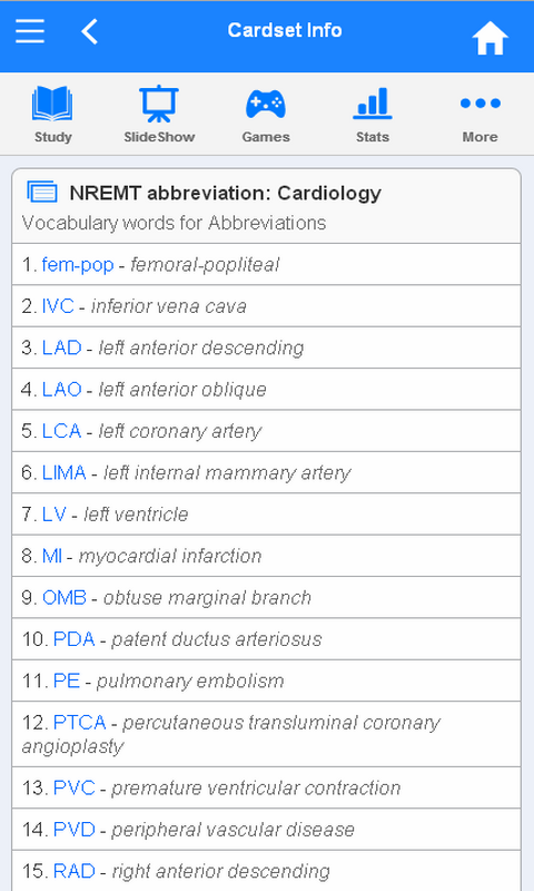 Using Flashcard will help you learn faster and remember more in a shorter time by showing flashcards just before you will forget them. NREMT Flashcards app has several learning modes: Study, Slide show, Matching, Memorize, Quiz to make the learning process for NREMT exam more exciting and fun.
