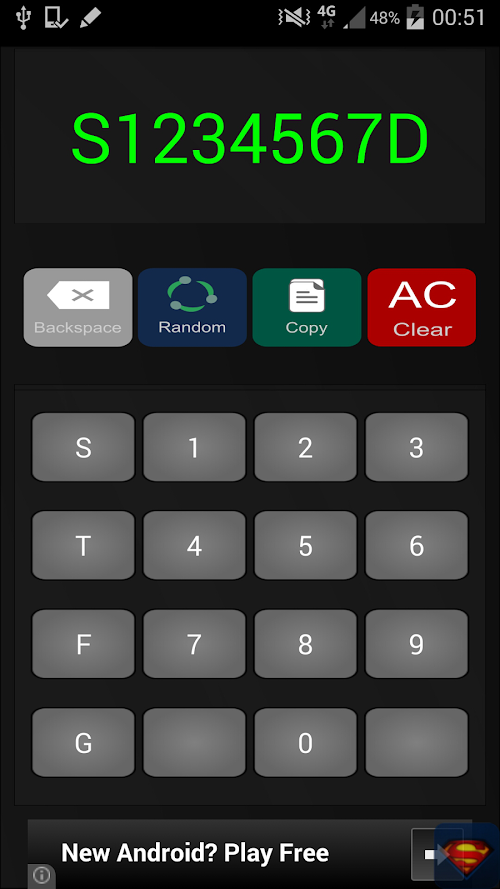 NRIC Checker mobile application allows you verify any NRIC/FIN number. You will just have to key in an NRIC or FIN number and it will auto generate the last correct alphabet to you. You may also use the application to generate random NRIC/FIN numbers which can be useful for data entry or testing purposes.