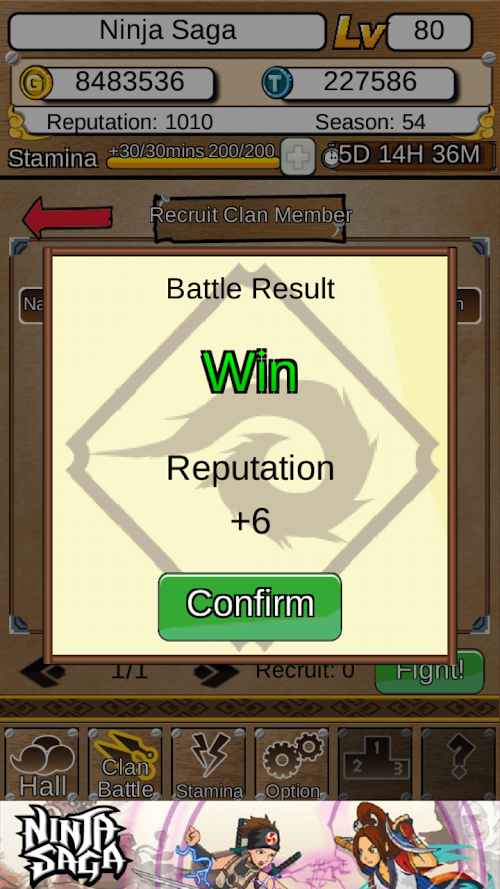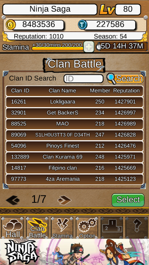 With NS Clan War Panel, you not only can take quick fights with other clans, but also upgrade your stamina limit and replenish your stamina!