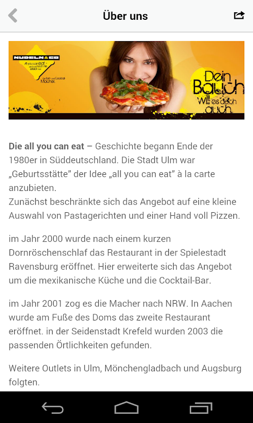 in 2001 it took the makers to NRW. In Aachen the second restaurant was opened at the foot of the cathedral. in the silk town of Krefeld suitable locations were found in 2003.