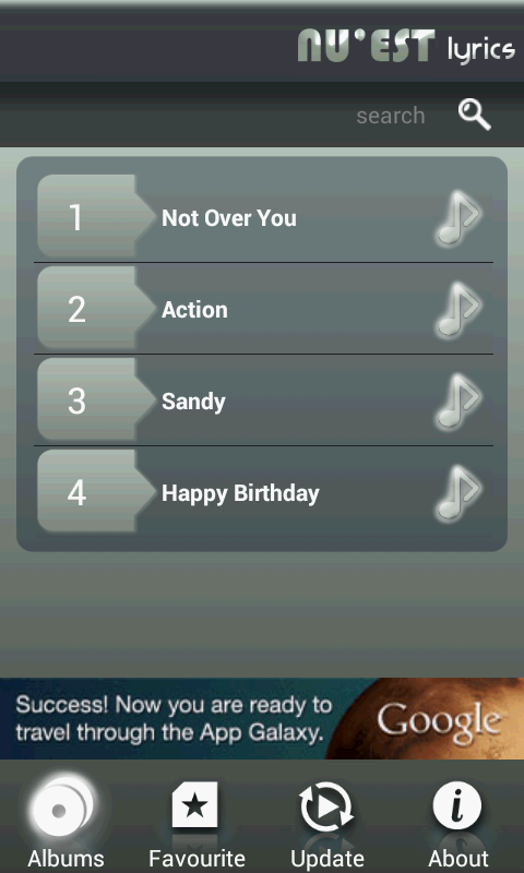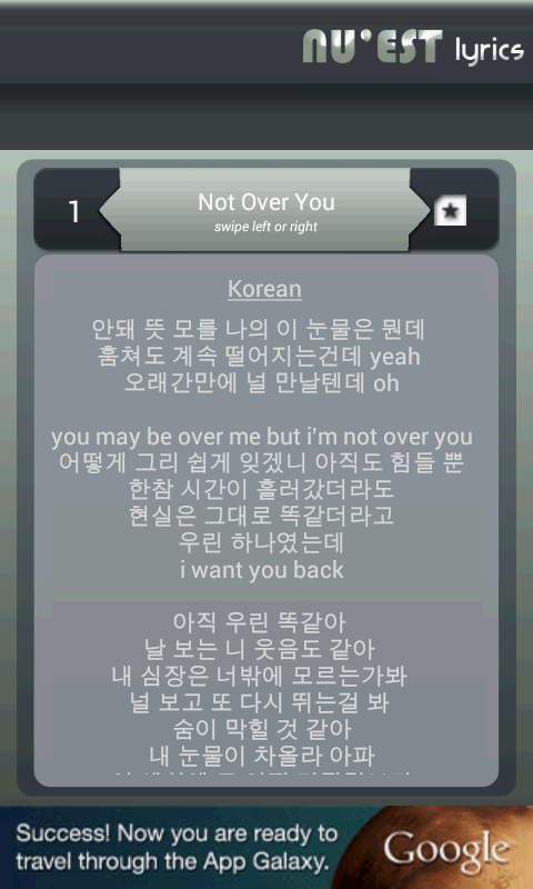 This version of Nu'Est Lyrics Android App comes with one universal variant which will work on all the Android devices.