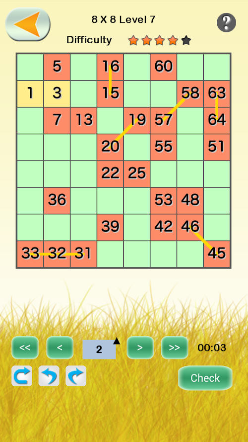Number Connect + is logic puzzle with simple rules. Your aim is to fill in the missing numbers, in squential order, going horizontally or vertically or diagonally.