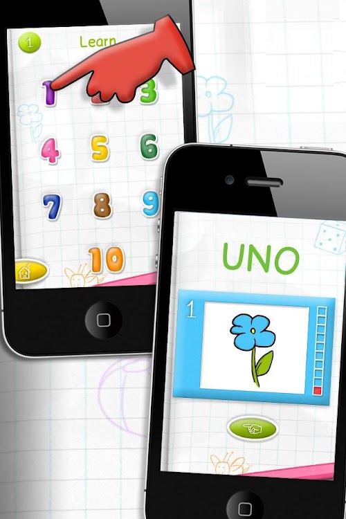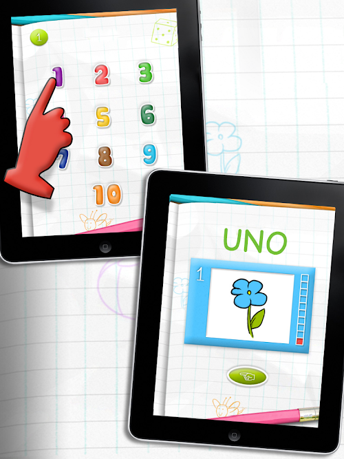 Tap the numbers and learn to recognize them. Discover 10 different images composed by sets and a very useful rule.