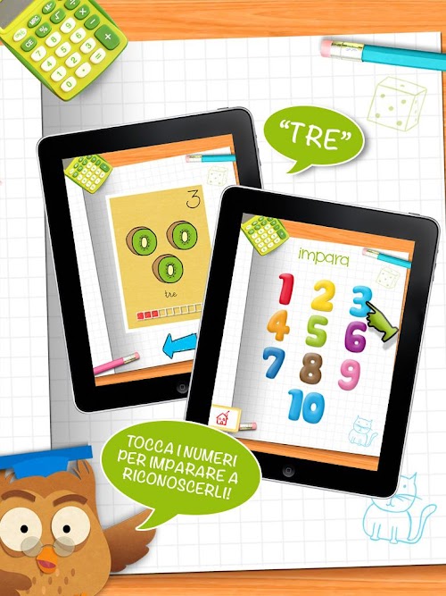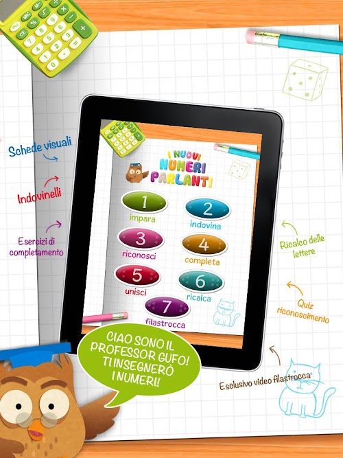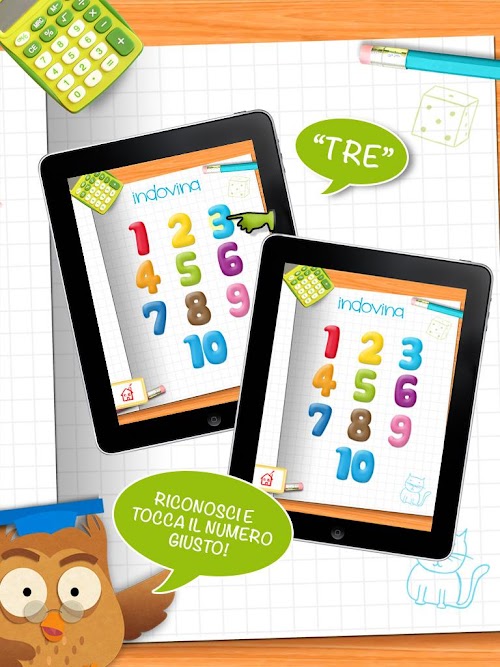 Numbers Talking in Italian is an application designed to children aged between 3 and 6 years. The game teaches number recognition, counting and understanding sets through a teaching and training created by experienced educators and educators. From today, your children can learn the rudiments of mathematics playing, having fun, just interacting with your smartphone and tablet.