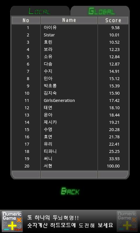 After removing all the numbers in the numeric keypad, you may register and check your time record in the ranking menu.