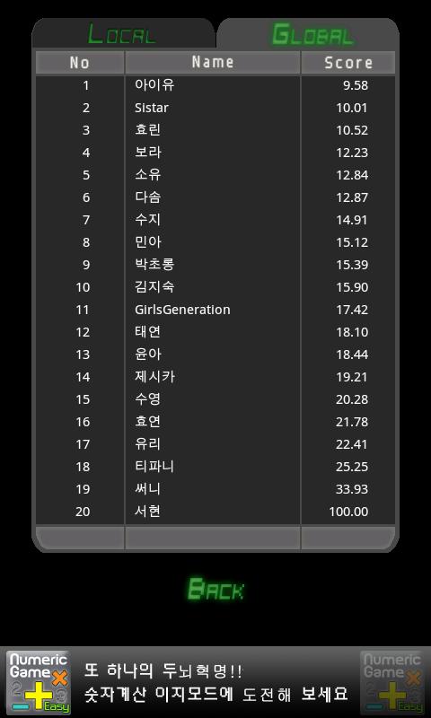 After removing all the numbers in the numeric keypad, you may register and check your time record in the ranking menu.