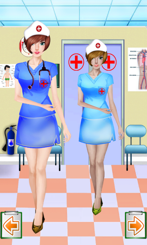 Emergency County Hospital needs new staff. We must find as soon as a person to act as a nurse, but do not know who to look for. We thought you were the best person for this job, so, in this game you have to be a nurse who first came to the hospital. First we have to go to a salon because we must prepare ourselves, so we must do the following steps:
