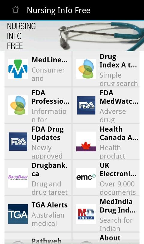 Nursing Info Free combines the best resources from around the world to give nursing and health professionals a quick way to find all of the information they need about drugs, medication, prescriptions, diagnoses, pathology and more. Quickly find how and why a medication should be used, potential side effects, adverse reactions, drug pharmacology, updates on drugs and much more.