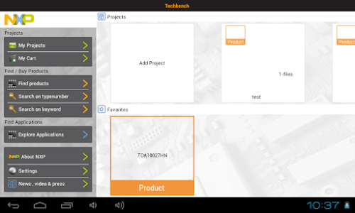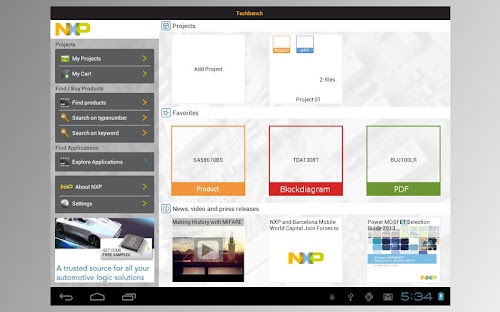 This free NXP Techbench app allows engineers to create a personalized workbench to search, cluster and store NXP design information in self defined project sections (+10.000 products and documents). Entire projects and their details can be shared via email or social media.