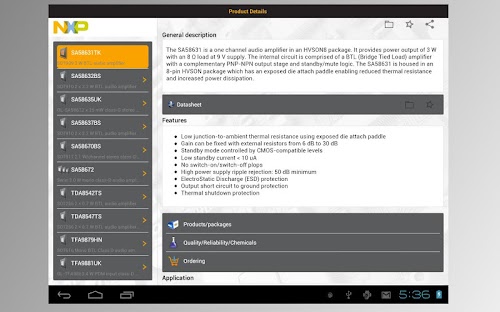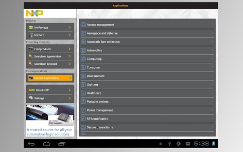 Quick and easy access to NXP design information and documents anytime, anywhere at the fingertips of electronic engineers. You can get rich information of semiconductor products like Amplifiers, Audio/radio, Bipolar transistors, Data converters, Diodes, ESD, EMI and signal conditioning, Identification and security, Interface and connectivity, Logic, Media processors, Microcontrollers , NextPower live MOSFETs, Power management, RF, Sensors, Thyristors, TV, STB front ends and NFC chips.