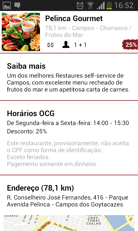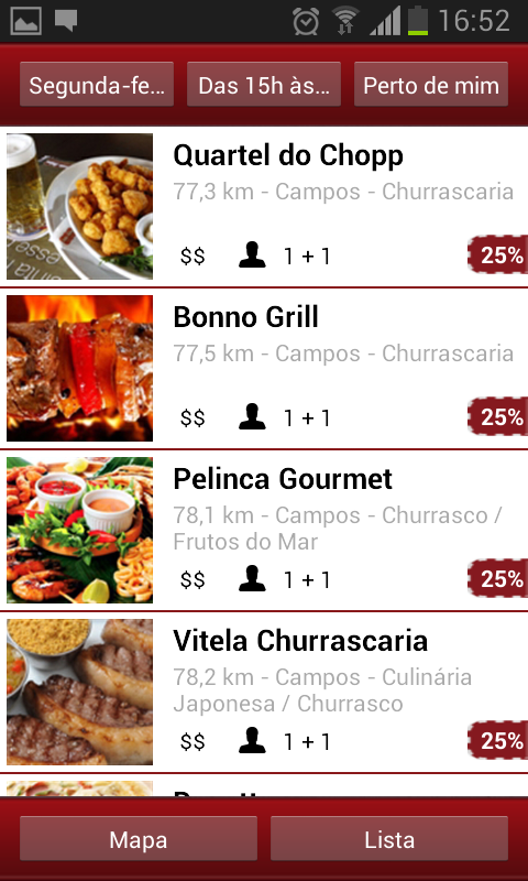 E o melhor: o desconto vale sempre para você e mais, no mínimo, um convidado. Além disso, o desconto não incide em bebida, sobremesa e gorjeta, não sendo também cumulativo com outras promoções do restaurante.