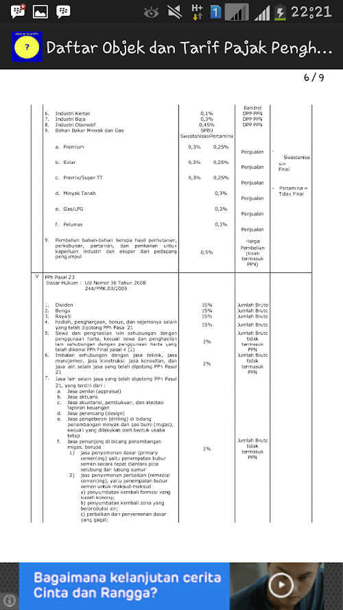 NB : Membutuhkan koneksi internet untuk membuka aplikasi ini.Object & Income Tax Rate is an application that presents a List of Objects and Income Tax Rates. Hopefully Helpful for those who work in the field of taxation or the Student Tax department.