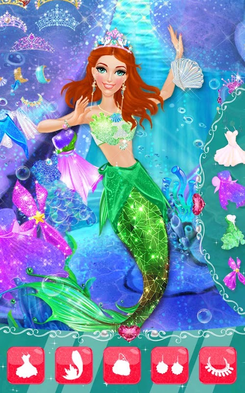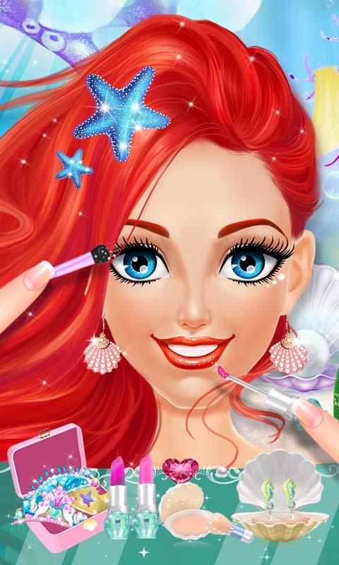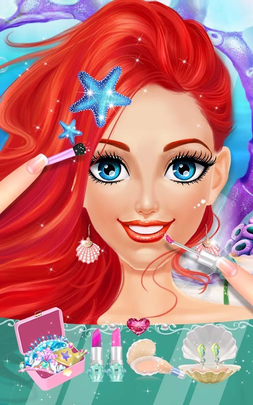 Dive under the ocean and what do you see? Pretty mermaids who need a makeup and salon makeover! Dress up three different mermaids in a stunning ocean setting with this cute game for girls. Do their makeup, give them pretty nails, pick out a new hair style and dress them in amazing outfits, all in the name of undersea beauty!
