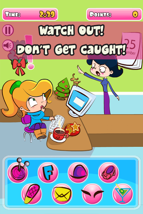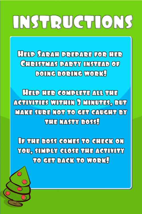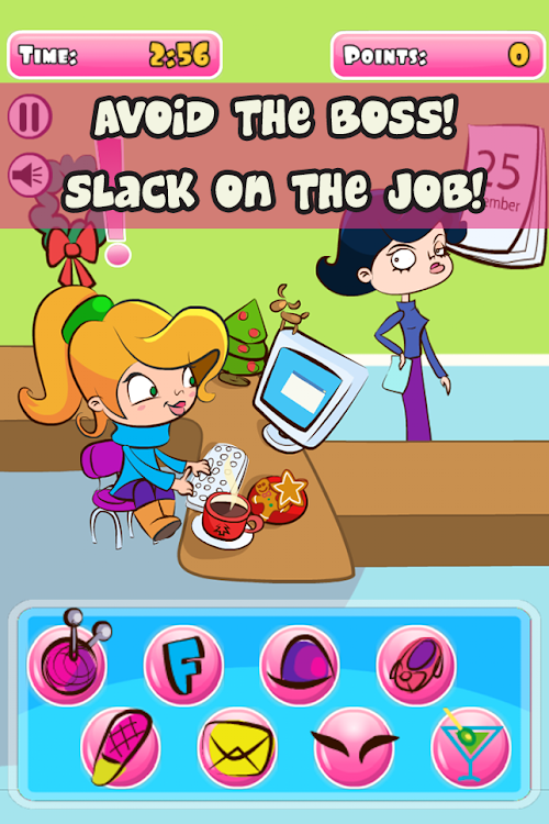 Sarah wants to go prepare for a Christmas party but is stuck in the office doing boring paperwork. Can you help Sarah avoid her boss and slack on the job by getting her make up and accessories ready in this fun skill game?