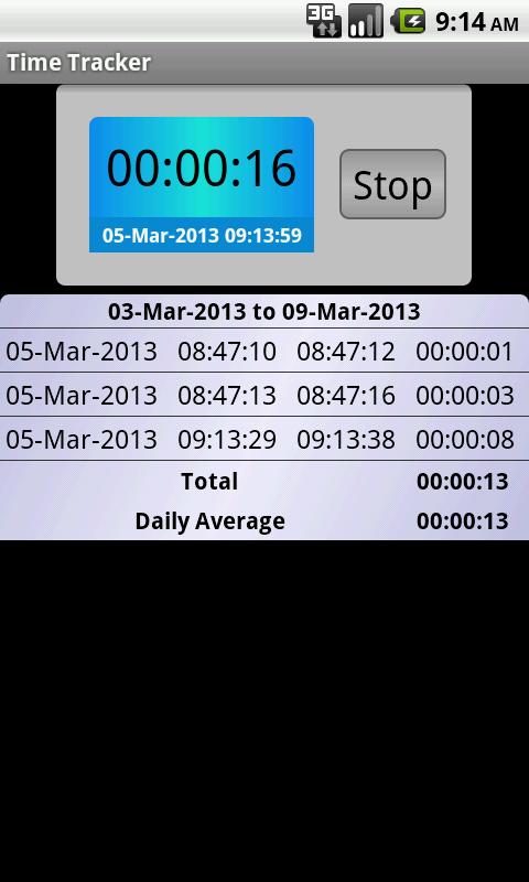 Time Tracker helps you to keep track of hours you spend at work. This app can be useful if you tracking to spend specified amount of time at office on daily or weekly basis. You can also use this when you want to know if you are spending long hours at office.