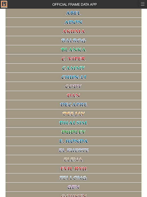 This app is the ideal resource for a beginner player or accomplished tournament veteran. Created in conjunction with our partners at Capcom, this app is a one-stop shop for all your frame data needs!
