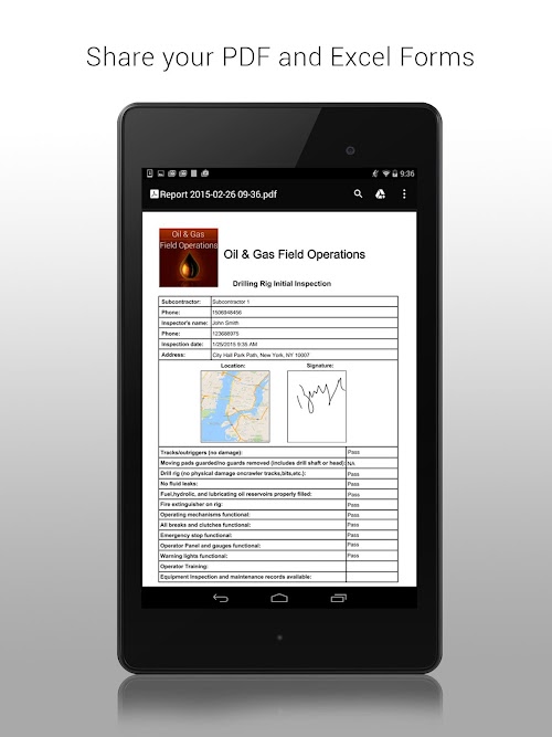 The Oil and Gas Field Operations is mobile app is designed to ensure the accurate and regular flow of information and streamline field operations by handling large amounts of collected data quickly and easily. Contractors, subcontractors, and other professionals working in the oil and gas field can utilize multiple mobile forms and calculators included into the app to performs inspections, make risk assessments, calculate density of oil and gas, measure dill pipe capacity, displacement and weight and more!