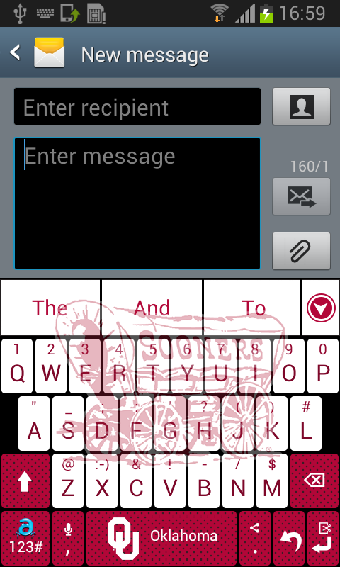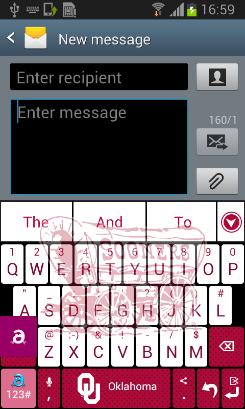 *Graphically rich Crimson and Cream theme keyboard with the OU logo